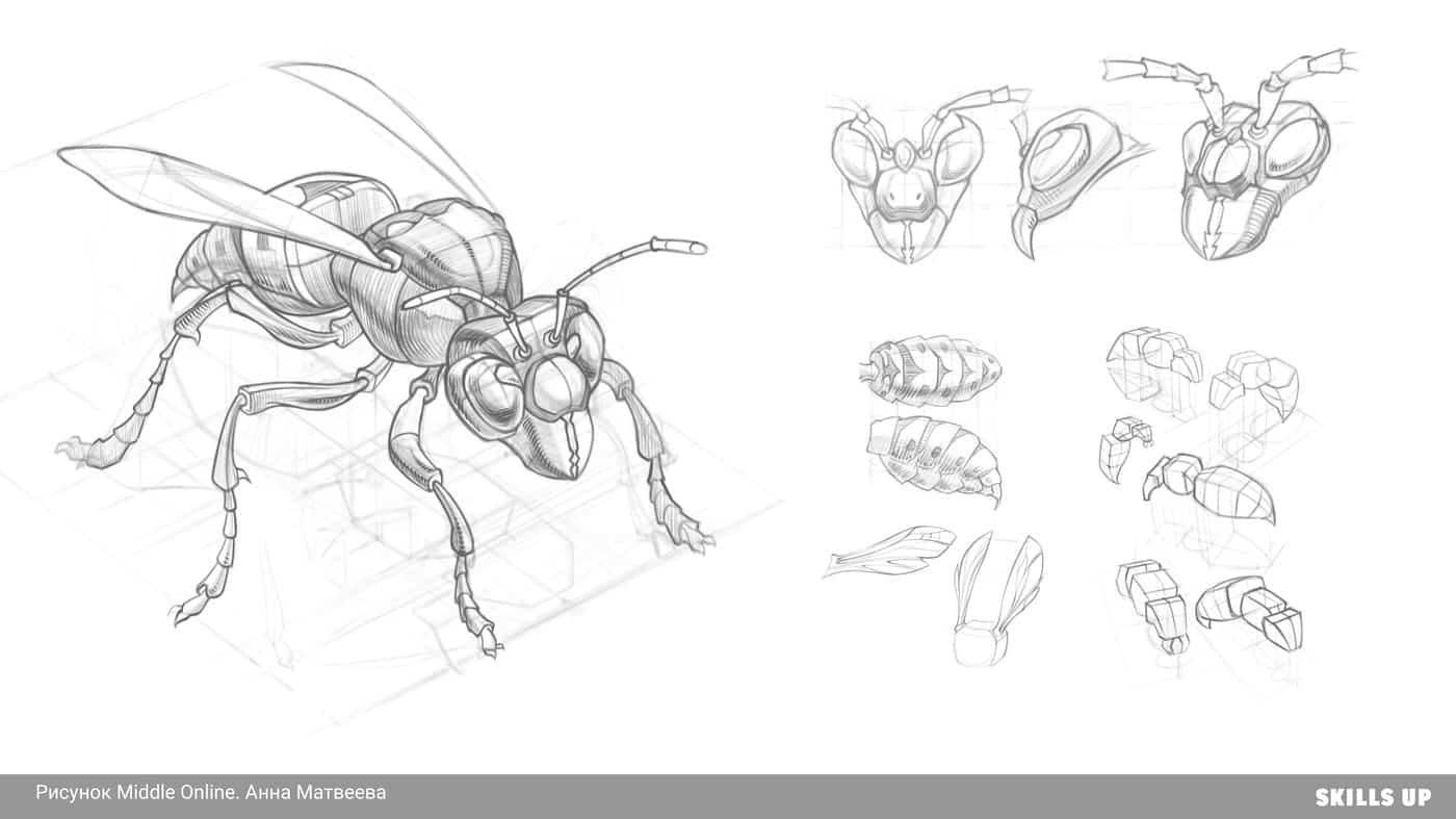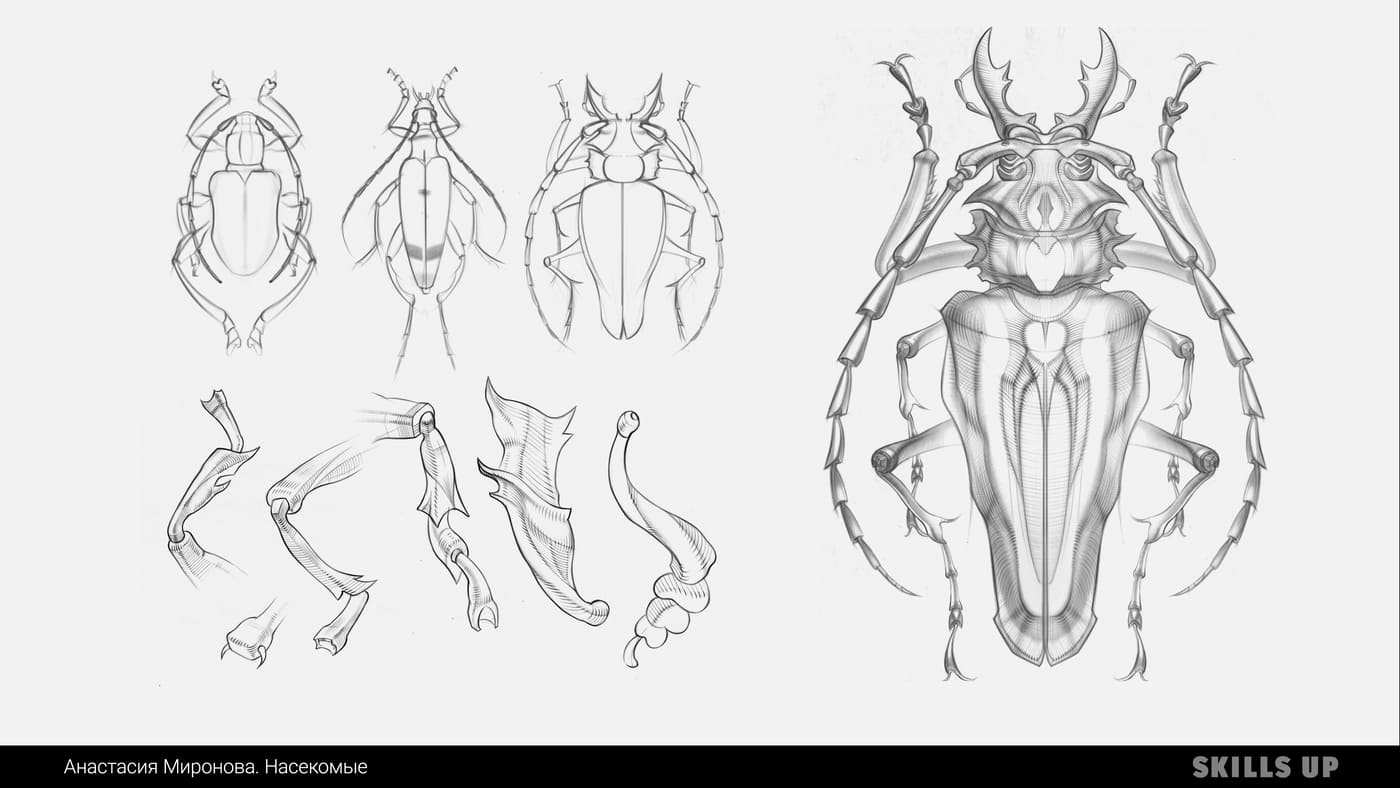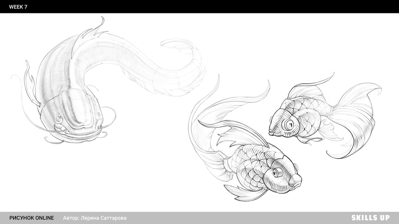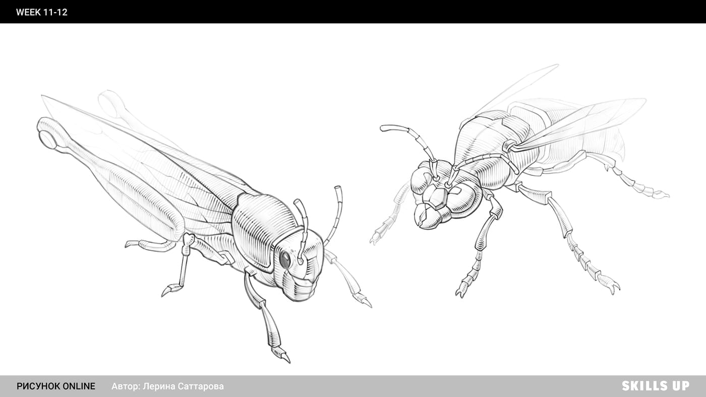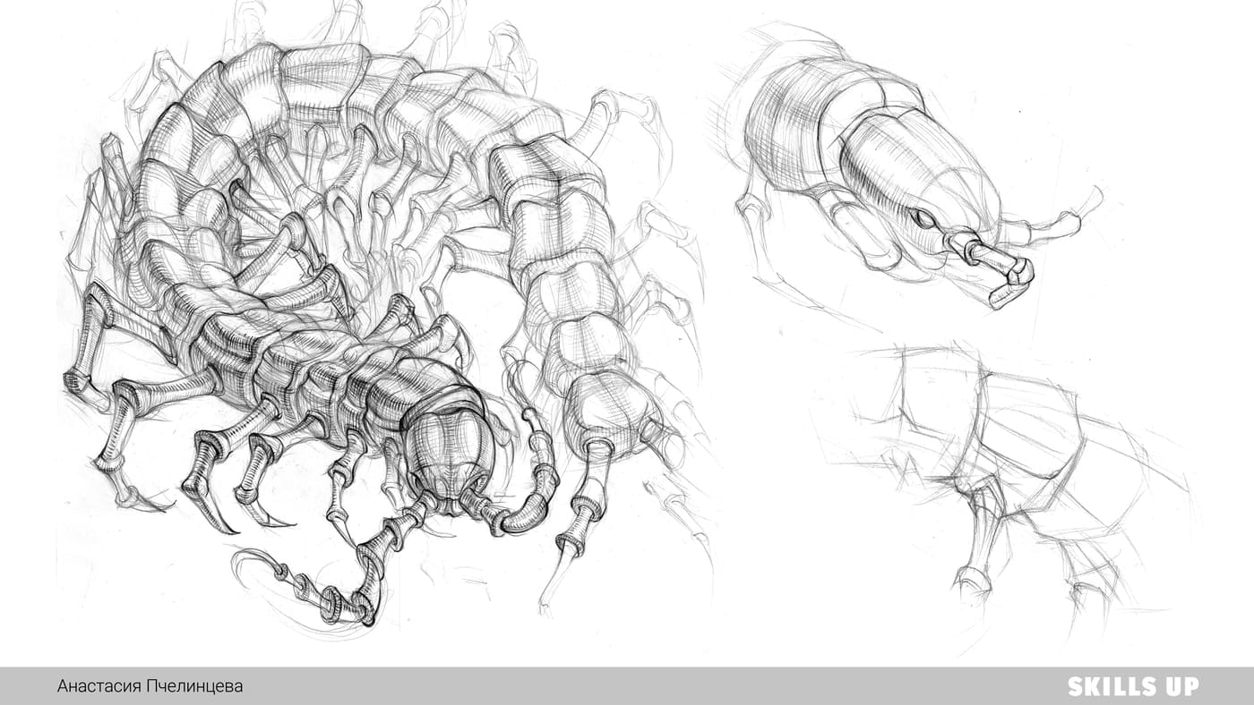 The first part of the course is devoted to industrial design. You will study perspective in detail, learn to masterfully work with chiaroscuro and master the plasticity of inorganic forms. Special attention will be paid to the analysis and creation of complex structures, which will allow you to confidently depict technically complex objects. In the second part of the course, you will immerse yourself in the study of natural forms. Using the example of fish and insects, you will master the basics of composition, learn to convey volume, silhouette and movement, as well as work with a variety of textures and surfaces. This will allow you to create lively and dynamic images that reflect the beauty and diversity of nature.