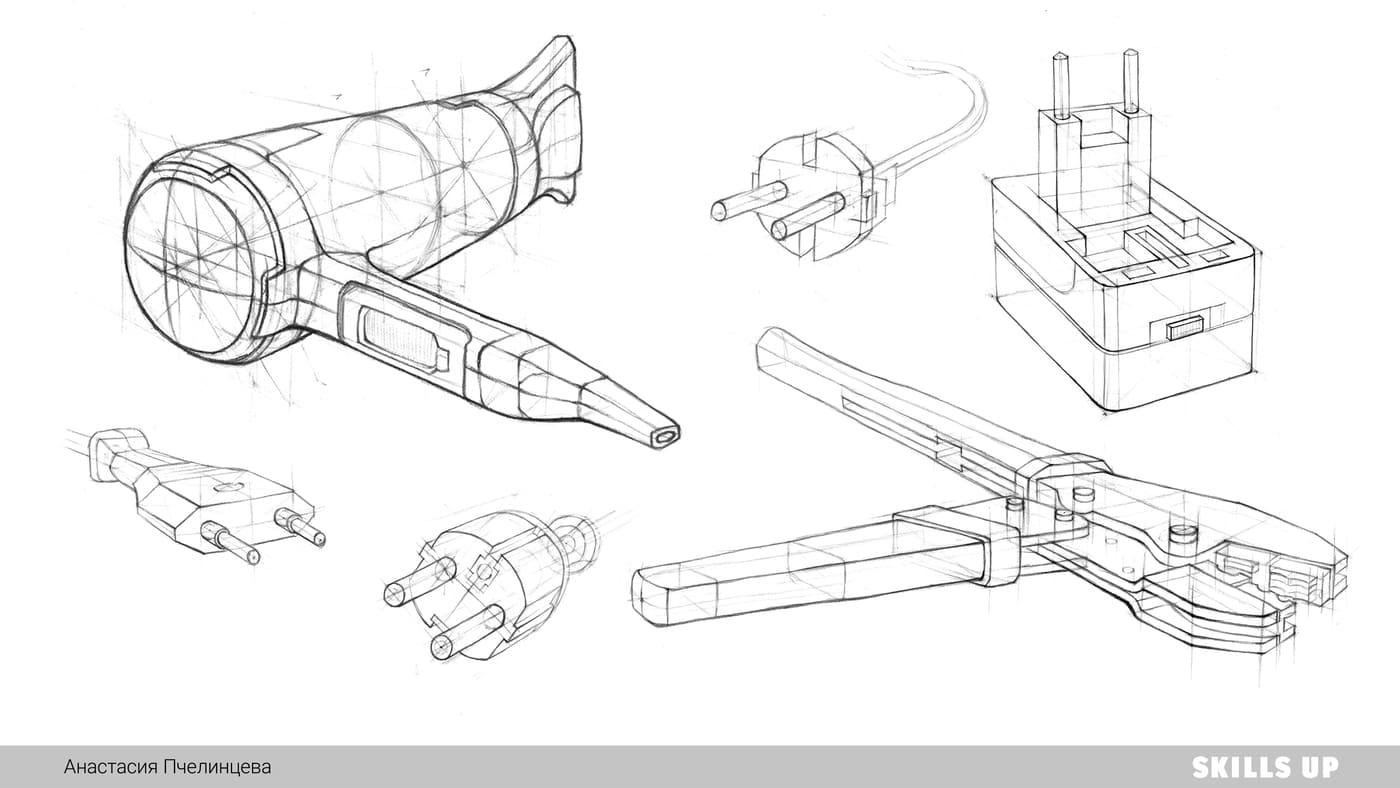 The first part of the course is devoted to industrial design. You will study perspective in detail, learn to masterfully work with chiaroscuro and mas